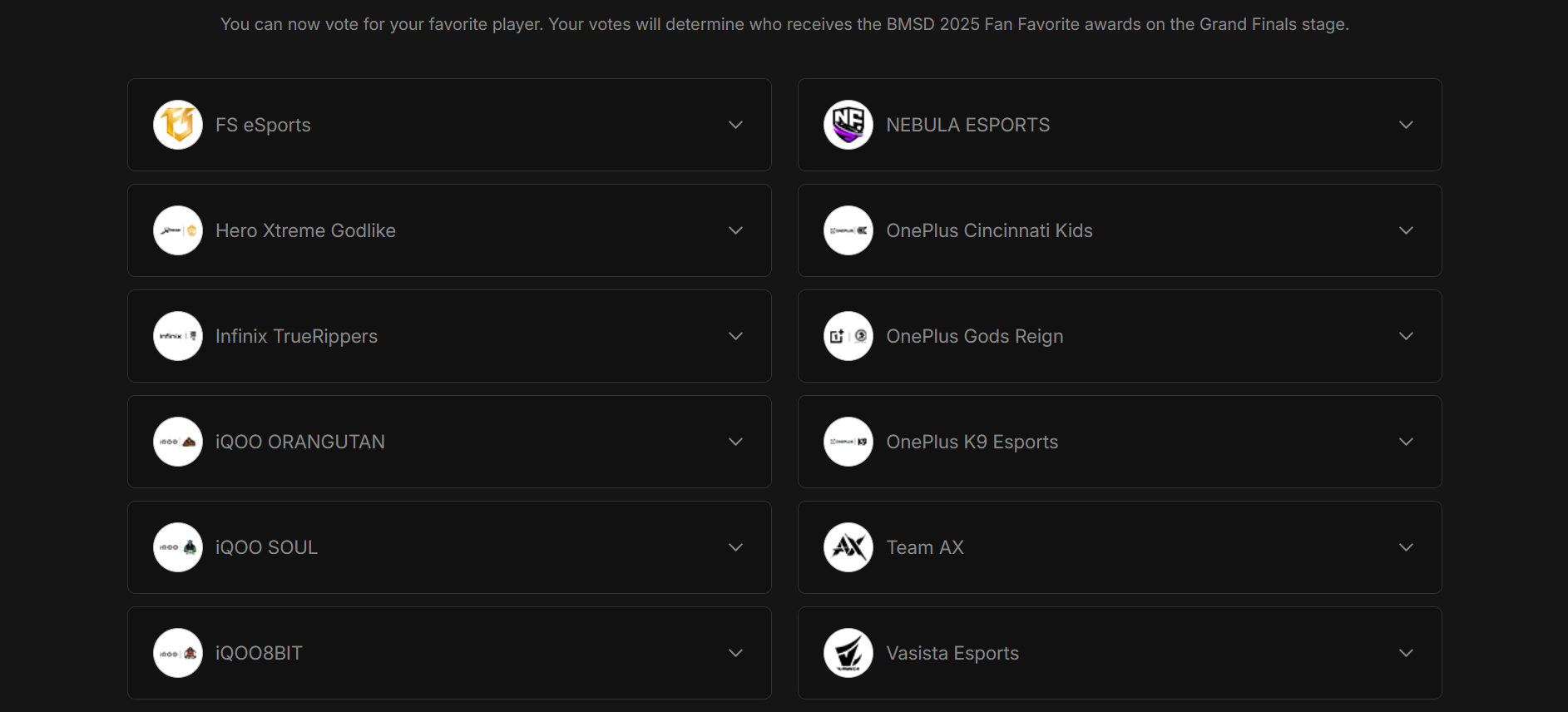 Fans can now head to esports.battlegroundsmobileindia.com to participate in the ongoing voting process. Each team’s player lineup is listed under their respective logos, allowing users to browse through all finalists and select the player they think has performed the best. Once chosen, fans can submit their votes following simple on-screen instructions.