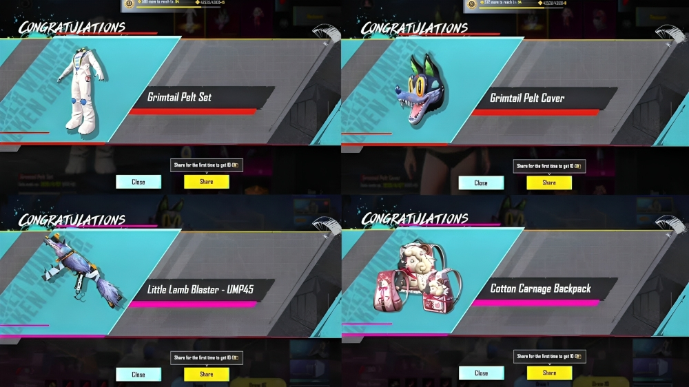 The designs in this Surprise Spin showcase PUBG Mobile’s continued push for fresh, creative cosmetic concepts. The Grimtail Pelt outfit stands out for its fantasy aesthetic and unique details, while the Little Lamb Blaster UMP45 adds a mix of cuteness and chaos to the battlefield. Combined with the Cotton Carnage accessories, the set offers one of the most cohesive and visually playful themes of the year.
